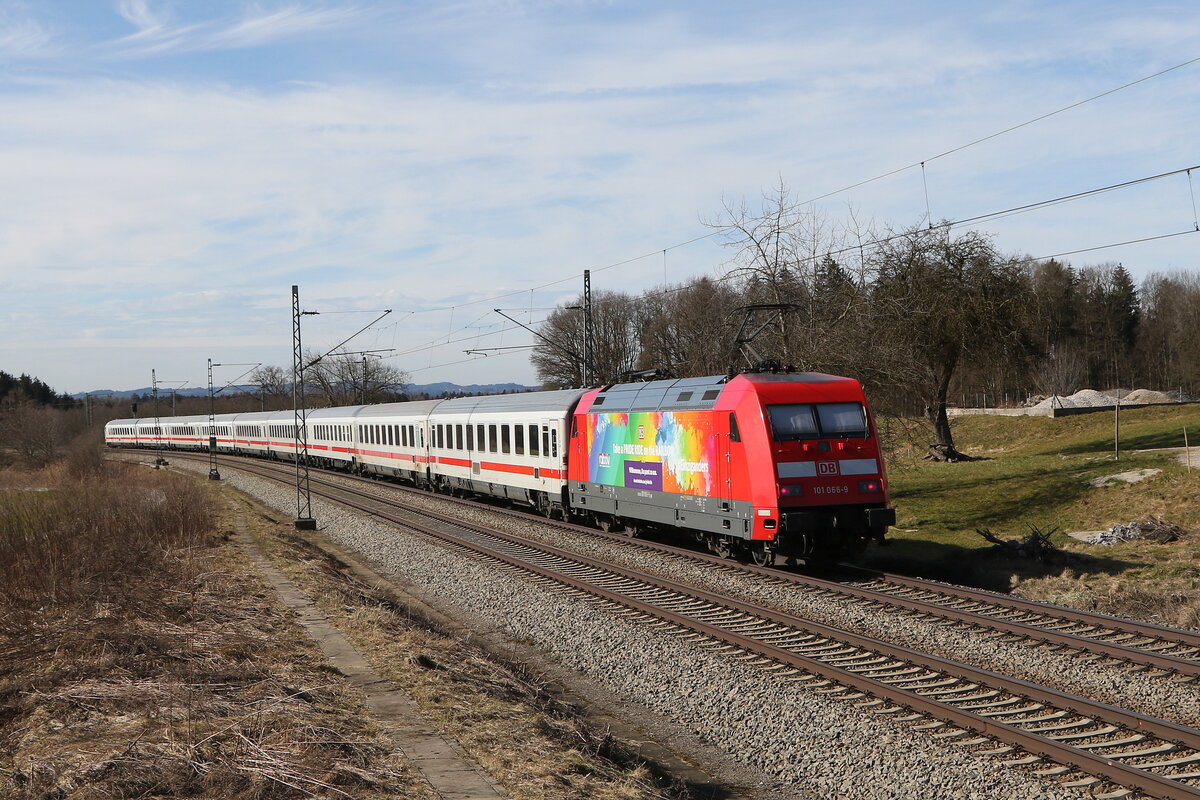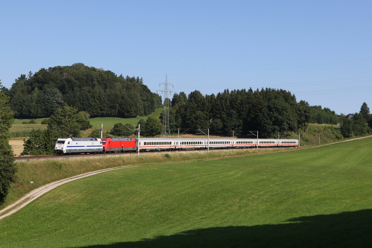 101 005 "DEVK" mit dem IC Königssee am 8. August 2022 in Gemünden am Main.