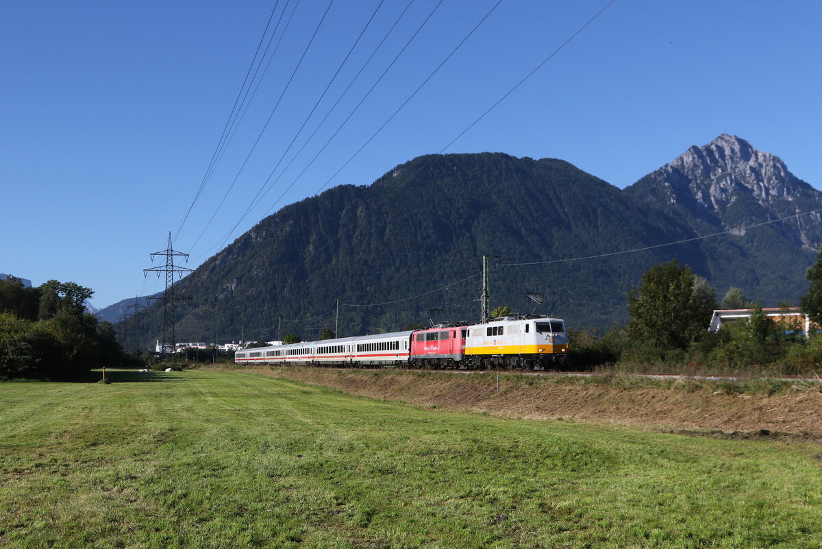 111 223 von "Smartrail" mit einem leeren Autozug aus Freilassing kommend am 13. Februar 2022 bei Grabenstätt im Chiemgau.