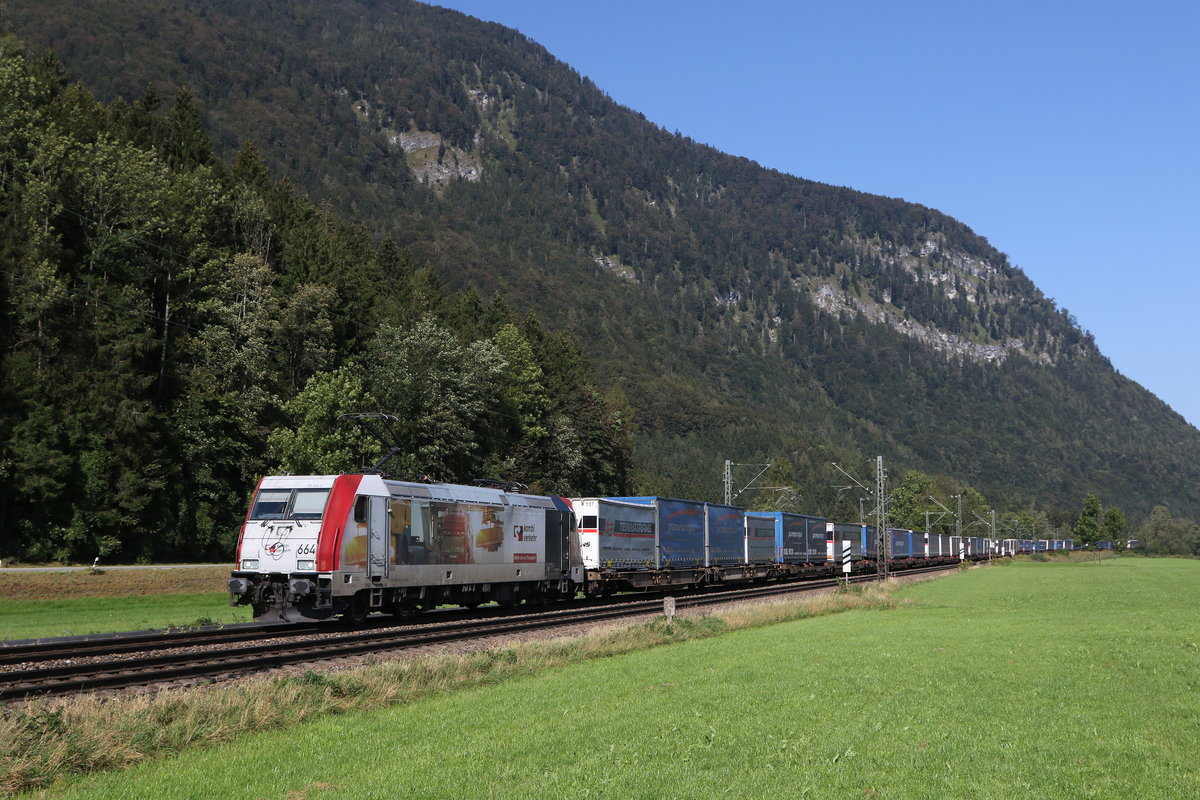 185 665 mit einem "KLV" am 23. Juli 2021 bei Himmelstadt am Main.