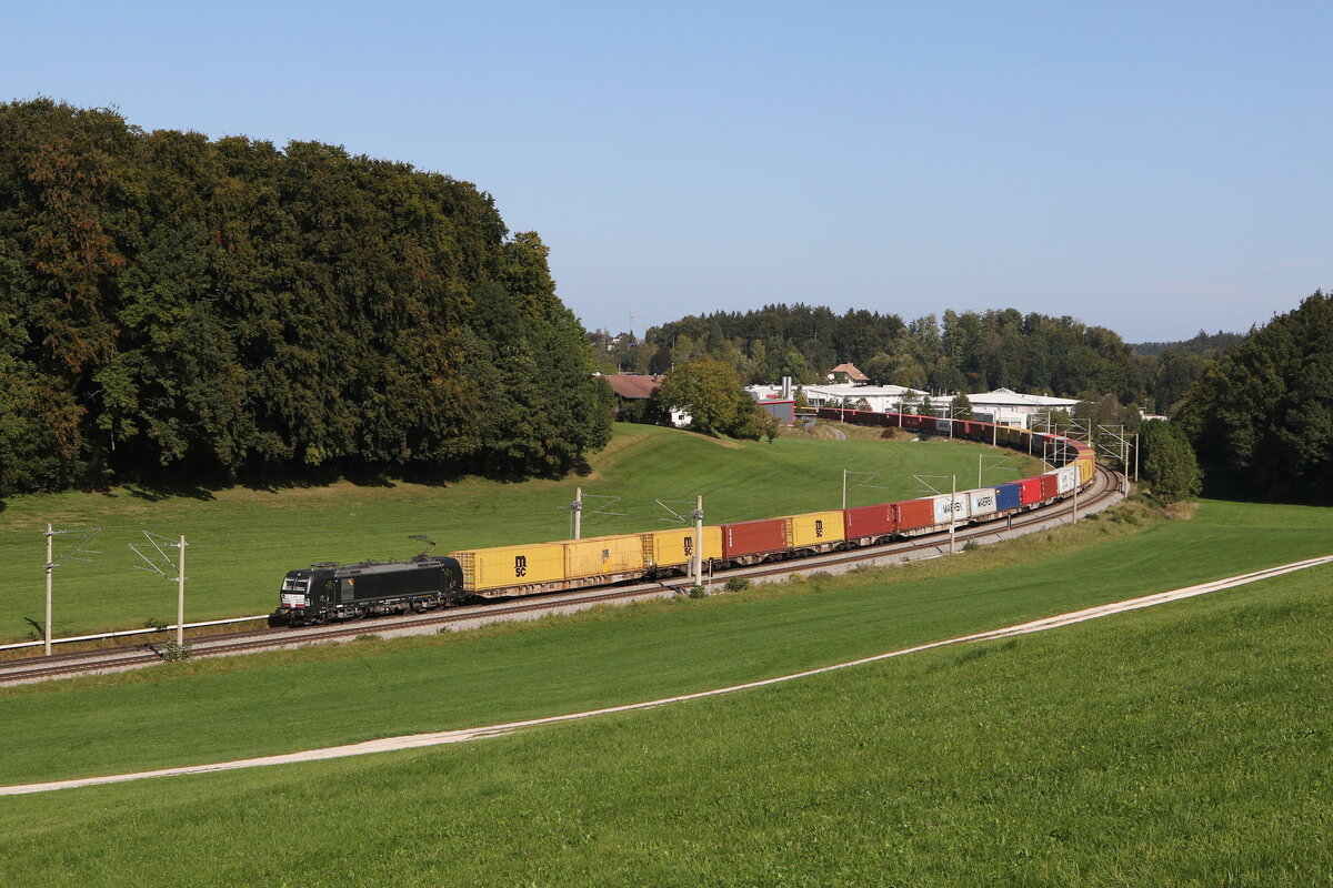 193 646 mit einem "KLV" aus Würzburg kommend am 23. Juli 2021 bei Himmelstadt am Main.