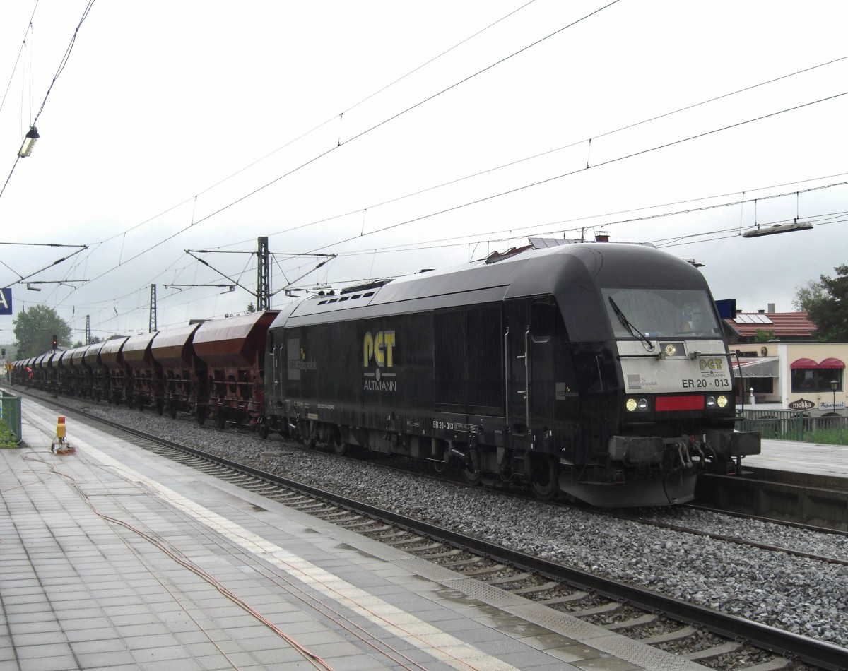 223 155 von "PCT-Altmann" mit einem leeren Autozug am 17. August 2017 bei Langwedel.