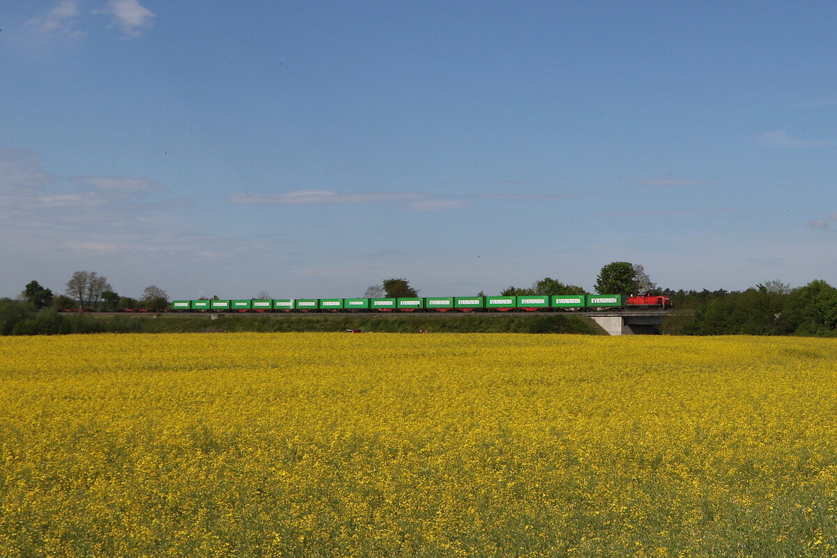 294 662 war mit einem "Müllzug" am 14. Mai 2025 bei Unterrackehof in Richtung Regensburg unterwegs.