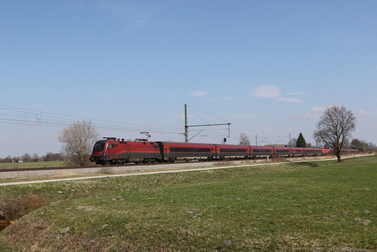1116 215 war am 26. März 2024 bei Brannenburg im Inntal in Richtung Innsbruck unterwegs.