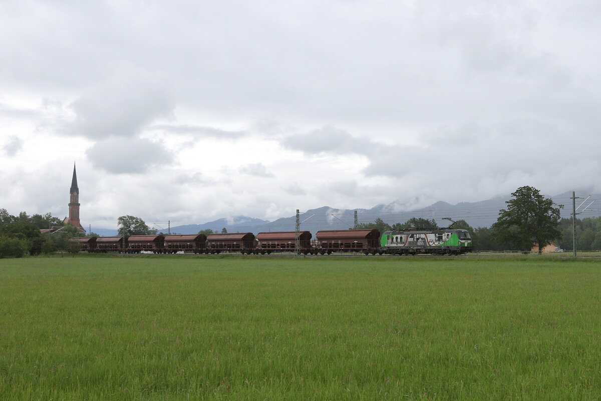 193 892 und V 100.51 von "SETG" mit einem leeren Holzzug aus Salzburg kommend am 9. Oktober 2024 bei Hufschlag.
