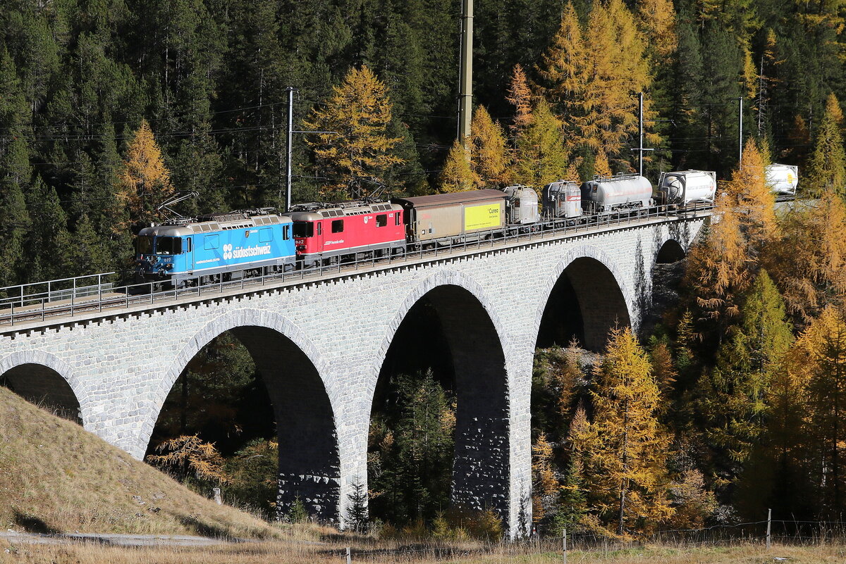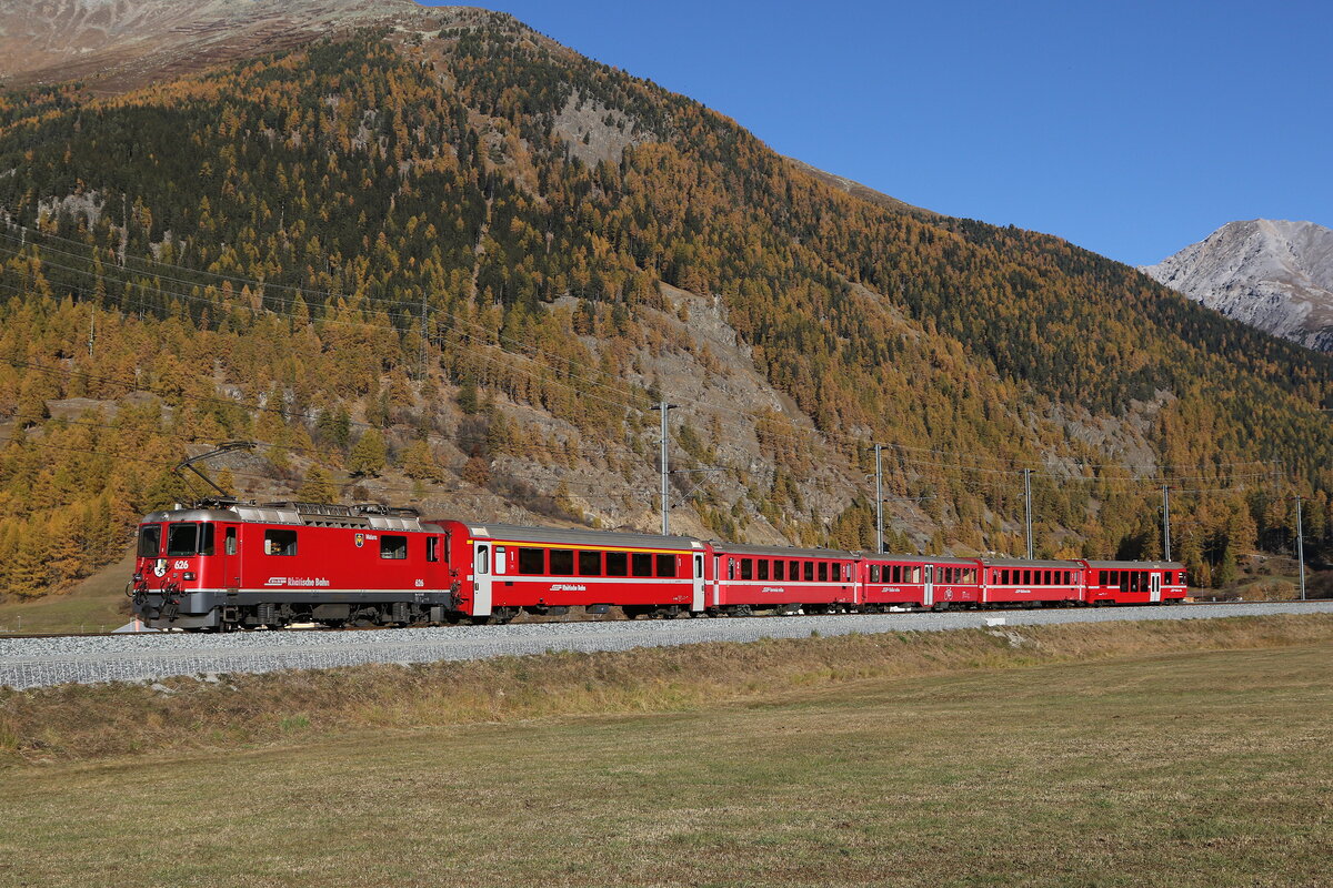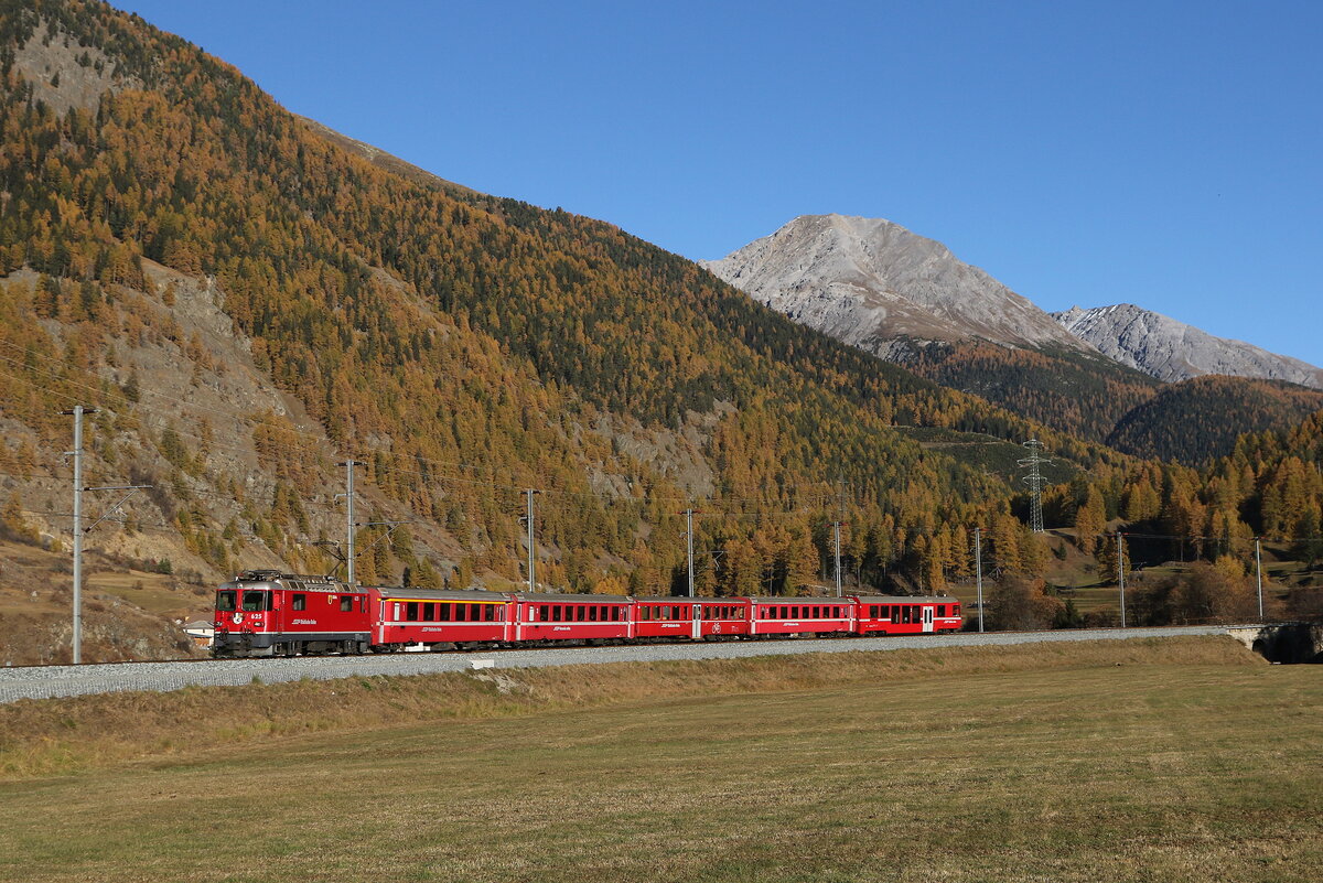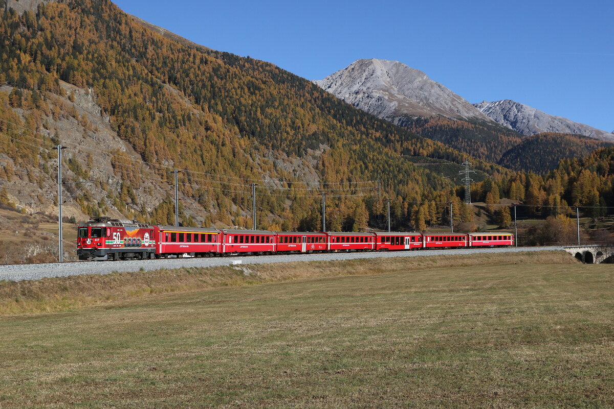 Ge 4/4 II 618 "Bergün" am 30. Oktober 2017 bei Susch.